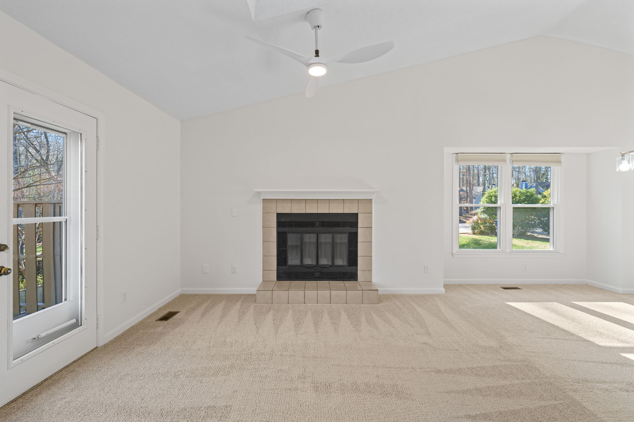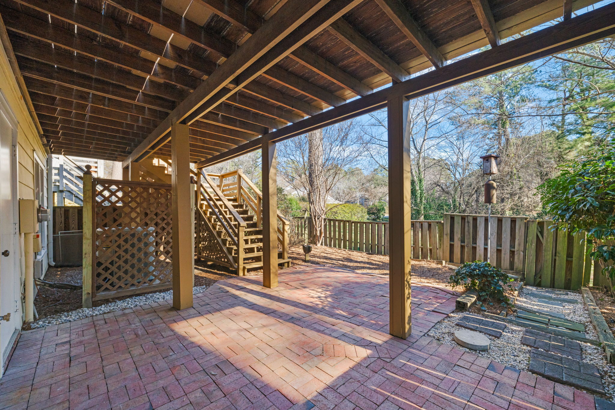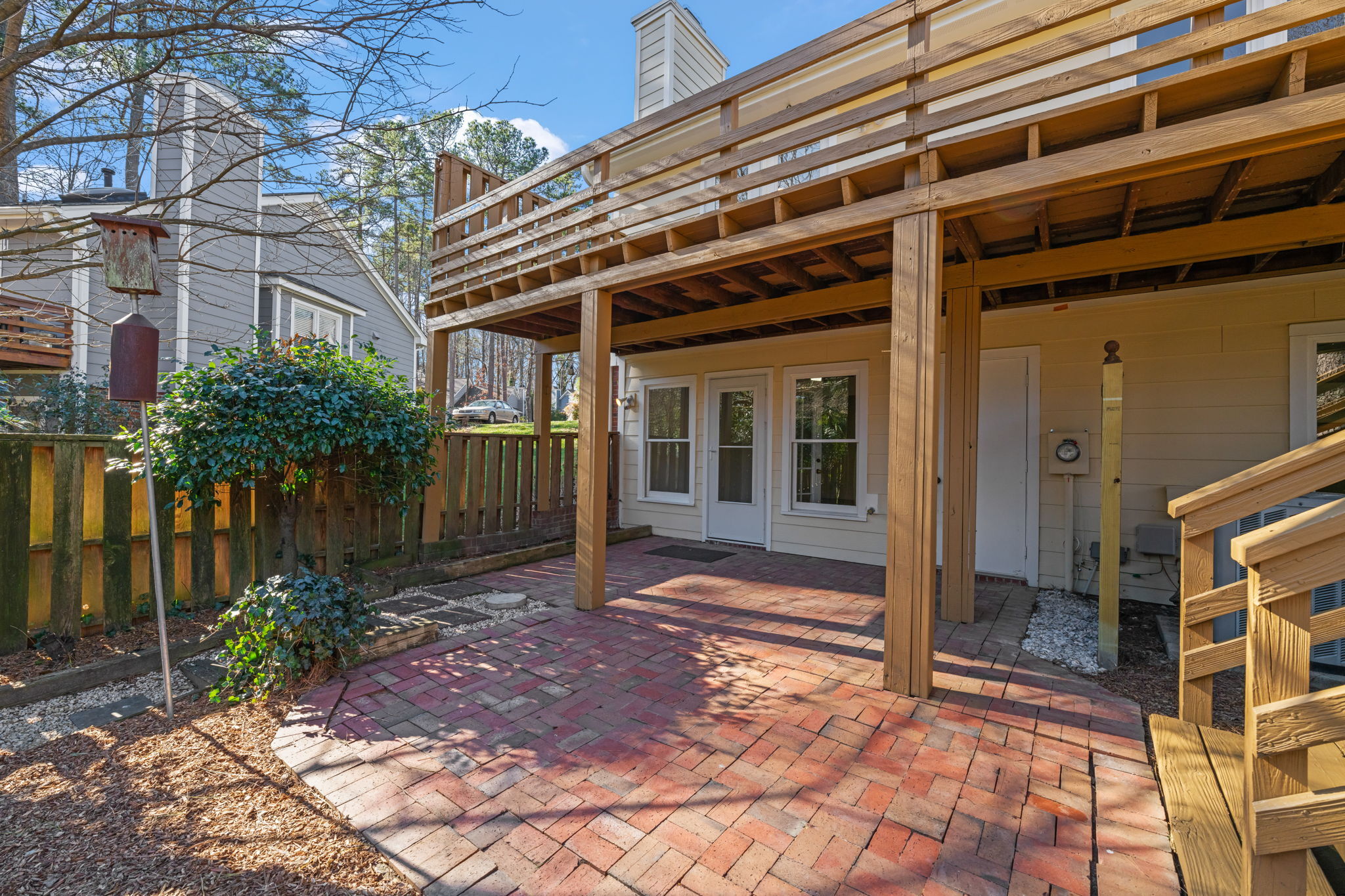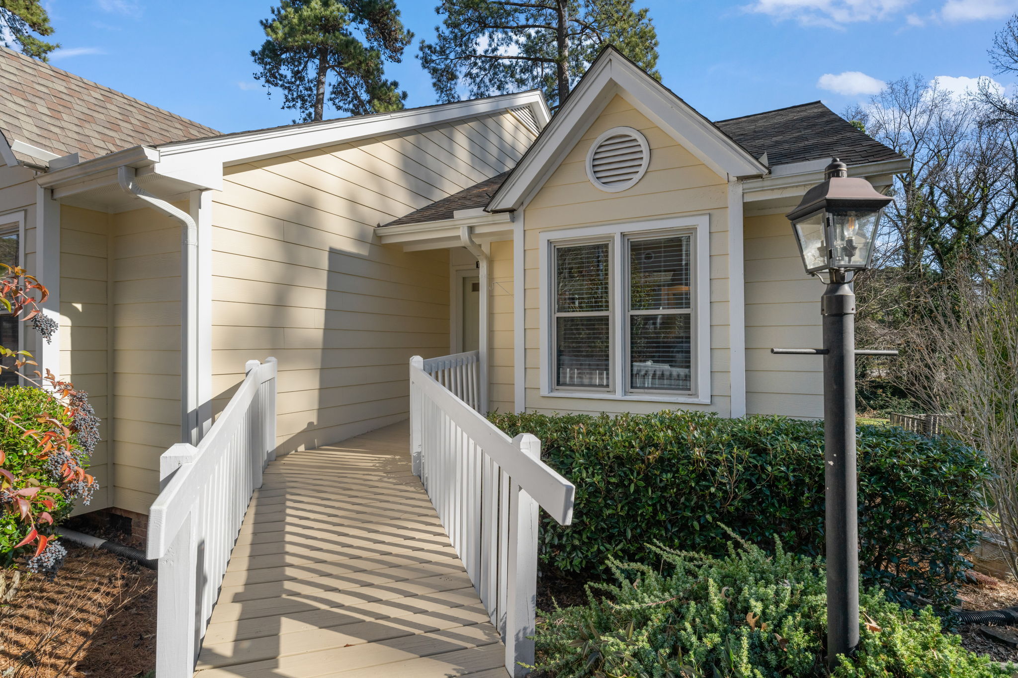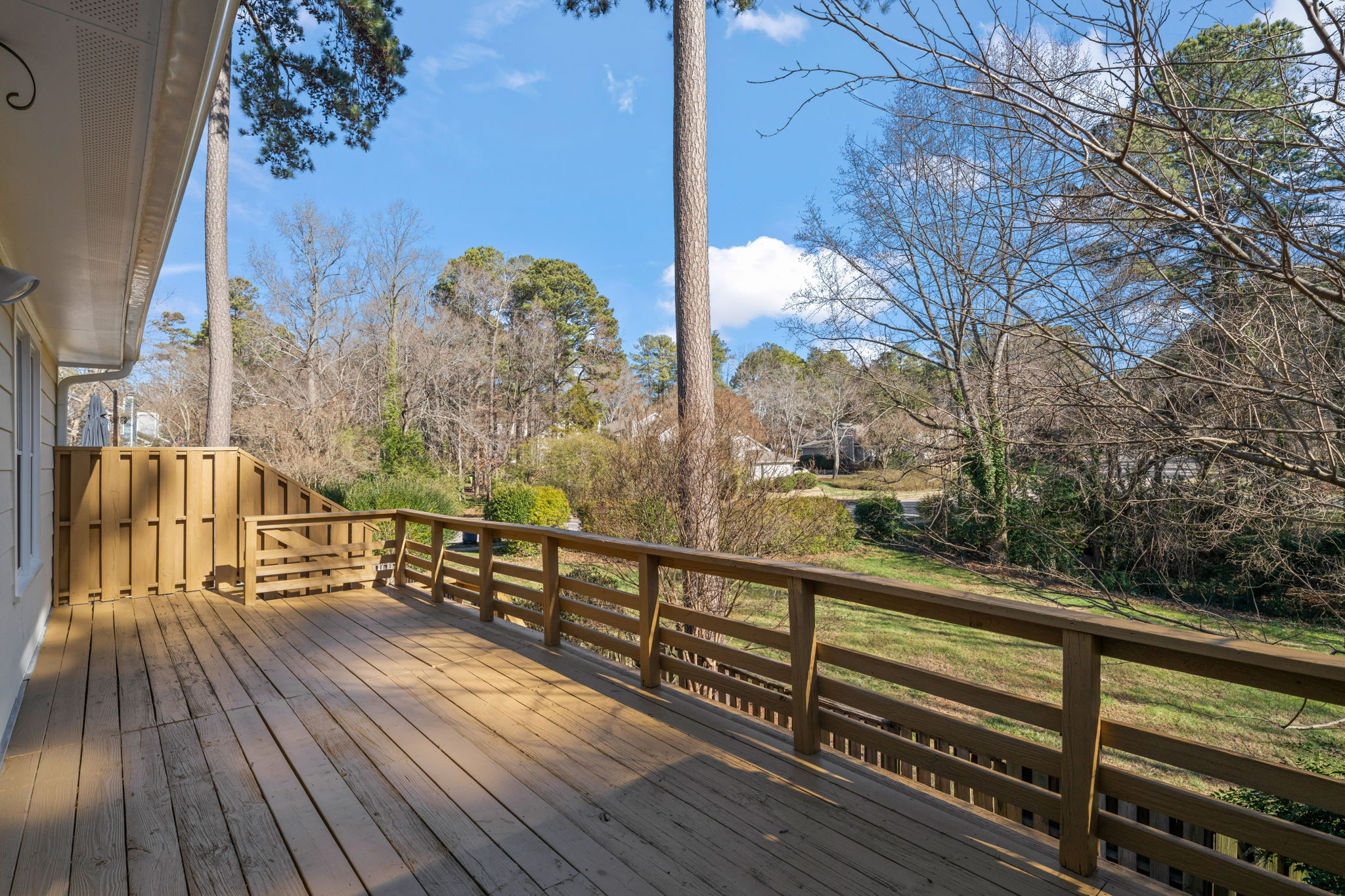 Welcome to this beautifully designed basement ranch home in the heart of North Raleigh, offering comfort, style, and versatile living spaces. The open floor plan is ideal for both everyday living and entertaining, highlighted by a well-appointed eat-in kitchen with stainless steel appliances, granite countertops, and ample workspace. The first-floor primary suite provides a private retreat with a walk-in closet and a relaxing bath. Enjoy cozy evenings by the gas log fireplace or extend your living space outdoors on the expansive deck overlooking a peaceful, tree-lined setting. The lower level offers exceptional flexibility with a third bedroom ,full bath, home office area and a spacious recreation room that opens to a charming brick patio—perfect for work, play, or guests. Incredible storage spaces: 9 spacious closets - 2 of them are walk-in closets. New carpet, LVP, exterior siding and roof are new. Community amenities include a pool and tennis courts within easy walking distance; all conveniently located near shopping, dining, and local parks. A wonderful opportunity to enjoy both comfort and convenience in a sought-after North Raleigh location.